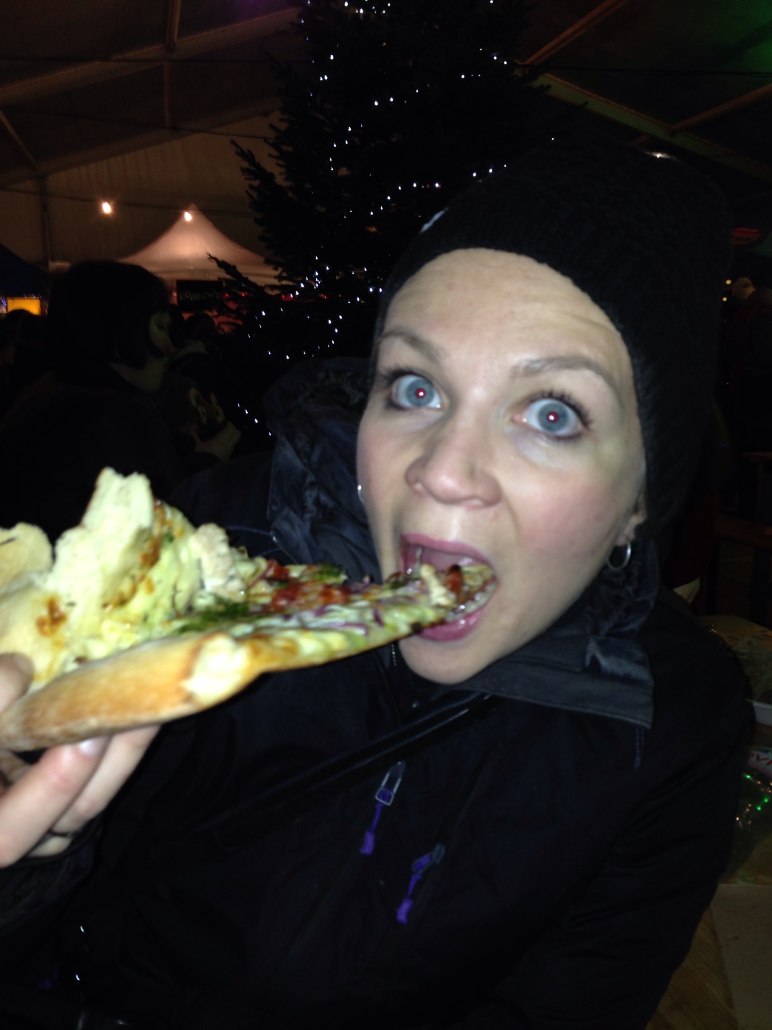 We scarfed down a Voodoo Ray’s gigantic pizza slice (probably the best value nosh on offer at £3.50) goggled at the rather snowy ice skating pit, the rather deserted roller disco (why have both? we pondered) and curiously at the rather charming Spiegletent which was last night attempting to woo the younger spender with club DJs Bugged Out (I realise how ancient this statement makes me sound) then spent £6.00 on an extra large portion of festive churros (they had cinnamon on them) to take to pick up the kids, who were already conveniently turning sugar circles from snowman biscuit making at Cubs, promising to return avec les enfants, in the morning. Winter Wonderland it ain’t but it’s a good enough distraction for the area, this year at least… But with a whole day of festivity planned, the event I’m most looking forward to today is the quaint annual feat of community that is the Victoria Park Winter Fair