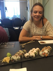 Afterwards, hyped on Maom and other sugary treats provided at the event, rounded off with a goodie bag on top, while we were wired on coffee, we went along to the pricey but nice Sushi ‘n’Sticks, whose complicated menu and lack of conveyor belt didn’t mean it was family unfriendly. The kids menu – chicken wings, sticky rice, edamame and juice, was plentiful, and to save ploughing through the 18 or so pages of hand roll options, we ordered two platters for us grownups – “big chicken, little duck” and salmon and tuna rolls, which was the perfect amount , and it was tasty and delicious, although I objected for paying 50p extra for “raspberry foam” on the kids’ sorbets. With drinks on top – two beers and a prosecco for me, we paid nearly £100, which is a lot for family dining, but you’d pay more for a romantic dinner a deux – chance would be a fine thing.