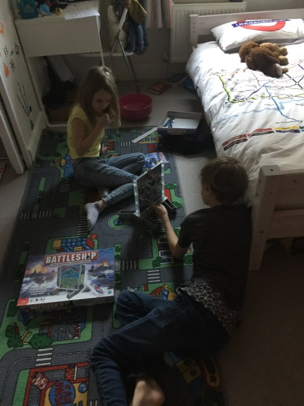 So, now we’re half way through the first month, how’s it going? Well, neither of them has demanded their devices – tucked away in a high cupboard – although we didn’t ban telly, feeling that modern life places so many demands on all of us, that we all needed a mindless activity to chill out in front of. It means we still get a weekend lie-in (and rather than sitting on their own with their device, they watch Spongebob together with the dog) and we can still watch programmes (mainly Bake Off) together as a family.
