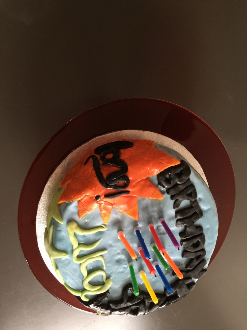 But it’s guns that seem to draw his fascination, and there’s a clue as to why in his early upbringing. Much like sugar, in seeking to be a good, though inexperienced first time parent, I banned toy guns because I didn’t like them. Like with sugar, I completely and utterly failed in my mission to shield him from its malign influence. He’s still a sugar-crazed lunatic, given half a chance, and my early banishment of toy weapons backfired massively. Realising my mistake, I swiftly backtracked but it was too late. He was hooked. I have pictures of his, a small boy, armed to the teeth in sunglasses, a junior menace who I indulged with a side helping of caution. Some of his pictures in primary school were of crazed attacks, where stick drawn avatars of himself and his friends were victors in an arena of bloodshed and hangings. To be honest, I was a little concerned, but when everyone I spoke to told me not to worry, I began to think to think I may have been overreacting. But, like me, Jonah has a tendency to overreact. Nonetheless, I made him a gin cake at his request. I am changed my stance on guns and sugar. Making them a taboo only makes them more of a draw, I realise.